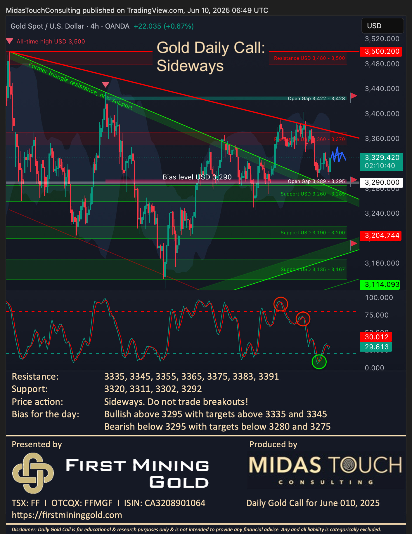 Gold Daily Call for June 10th, 2025#gold #firstmininggold #preciousmetals #bullmarket #alltimehigh #GOLDRUSH #breather #sideways #anothertriangle #consolidation #FF #FFMG ๐จ๐ฆFlorian GrummesJun 10, 20251Share